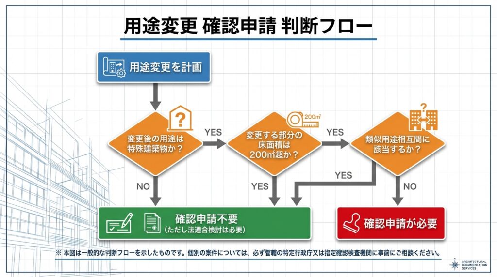 用途変更の確認申請は、感覚ではなく、条件を整理して取り組みましょう。