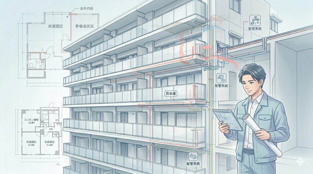 - 漏水実務では、図面上の区分だけでなく、管理権限と維持責任の整理が重要になる。