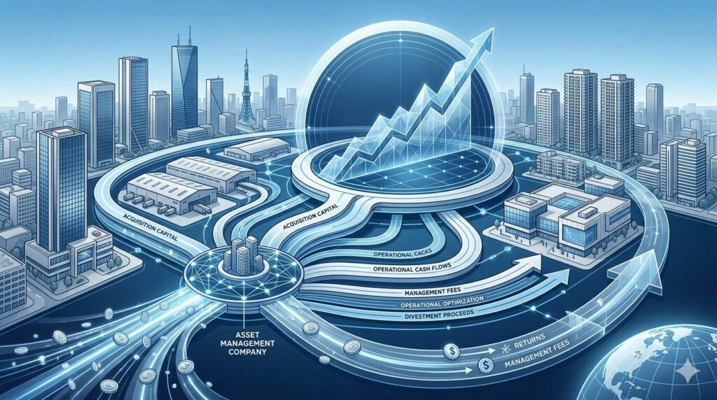 J-REITの一般的な仕組みでも、投資法人が資産運用会社へ運用を委託し、その対価として資産運用報酬が支払われます。
