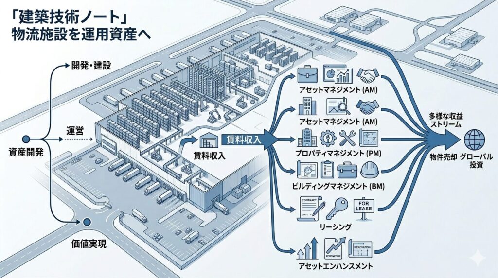 - 物流施設は、開発後にファンドやREITへ載せやすいため、フィービジネスと相性が良い。